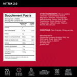 Aporta: Cada porción de Nitrix 2.0 proporciona 3 gramos del aminoácido L-citrulina, precursor del óxido nítrico, y 3 g de creatina.