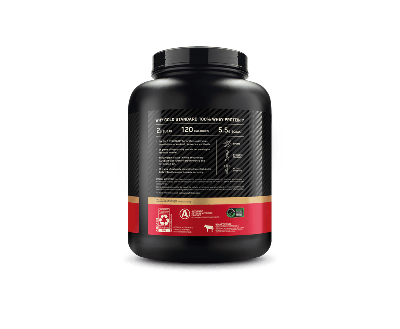 Cada servicio de Proteína Gold Standard Whey está repleto de microfracciones de proteína de suero biológicamente activas, como alfa-lactoalbúminas, glicomacropéptidos, beta-lactoglobulinas, inmunoglobulina G, lactoferrrinas, lactoperoxidasas y diversos activadores del crecimiento. Además, se ha enriquecido con 4 gramos de glutamina y precursores, así como 5 gramos de BCAAs (aminoácidos ramificados) en cada toma. ¡Potencia tus resultados fitness y alcanza tus objetivos con la Proteína Gold Standard Whey de Optimum Nutrition!