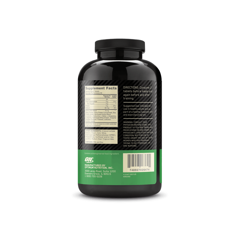 OPTIMUM NUTRITION SUPERIOR AMINO 2222 160 Tabletas Importado.