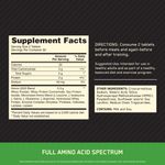 Cada porción de 2 tabletas aporta aminoácidos diferentes. Su matriz proviene de una mezcla de proteínas aisladas, concentradas e hidrolizadas, además de aminoácidos micronizados. Esta combinación de alta calidad es ideal para añadir aminoácidos a tu cuerpo antes de entrenar, después de tu rutina o antes de dormir, manteniendo un balance proteico positivo.