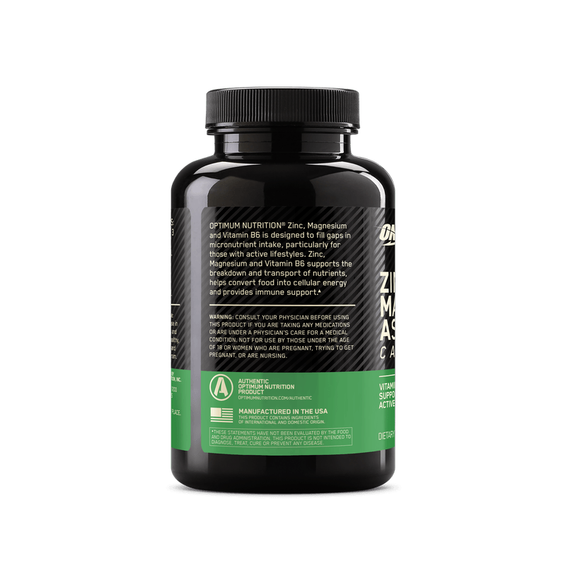 QUÉ INCLUYE ESTE PRODUCTO: Optimum Nutrition ZMA Cápsulas 90 Unidades El ZMA es una mezcla de Zinc, Magnesio Aspartato y Vitamina B6. Estos minerales son fundamentales para numerosos procesos metabólicos en el cuerpo. El ZMA está diseñado para apoyar la recuperación muscular después de un entrenamiento intenso y mejorar la calidad del sueño, lo que es vital para el crecimiento muscular y el bienestar general. Es un soporte nutricional de calidad para el atleta.